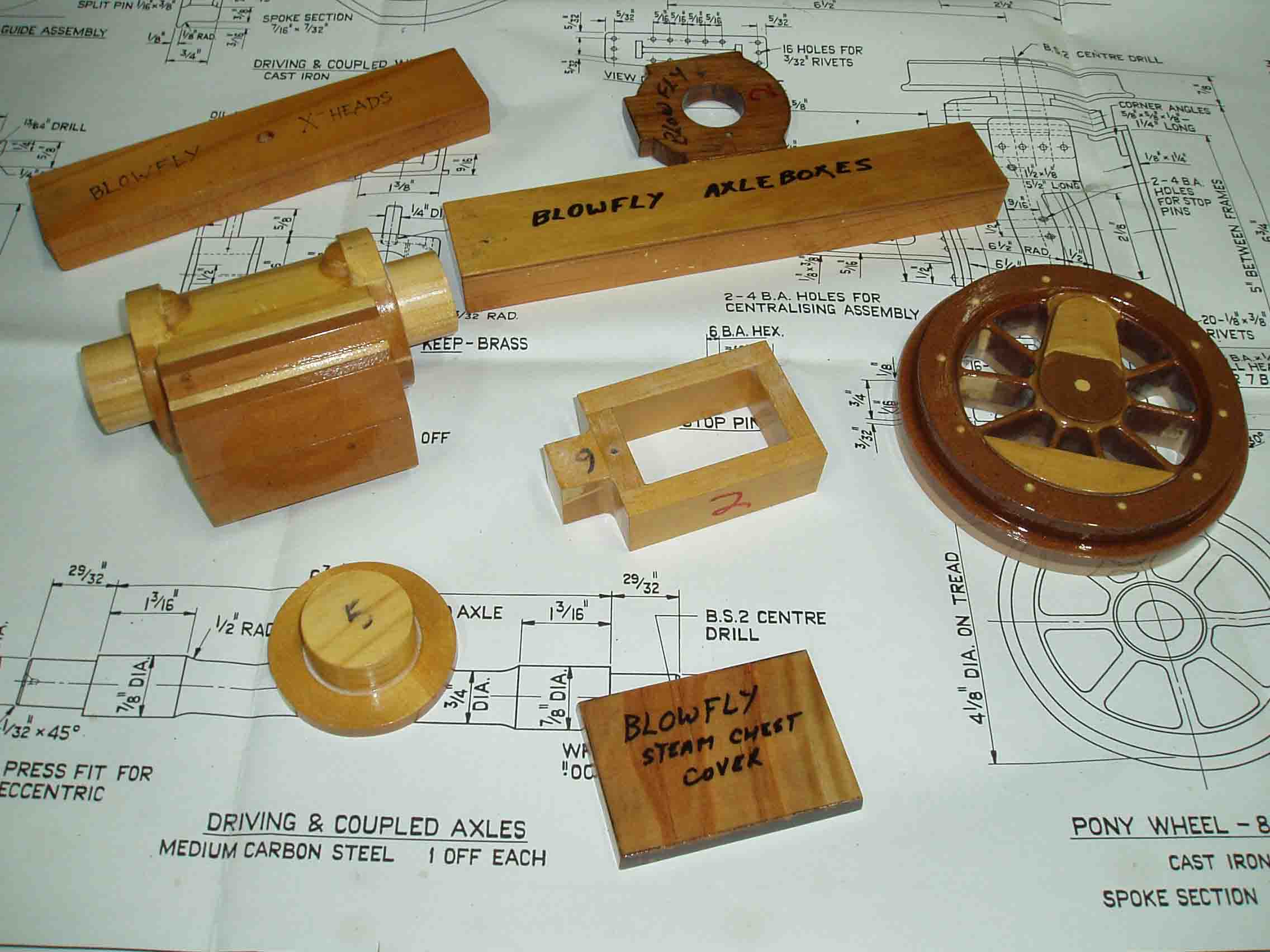 These patterns were from a 5" Gauge loco, the wheel and cylinder patterns have been widened to suit a 7 1/4" loco
