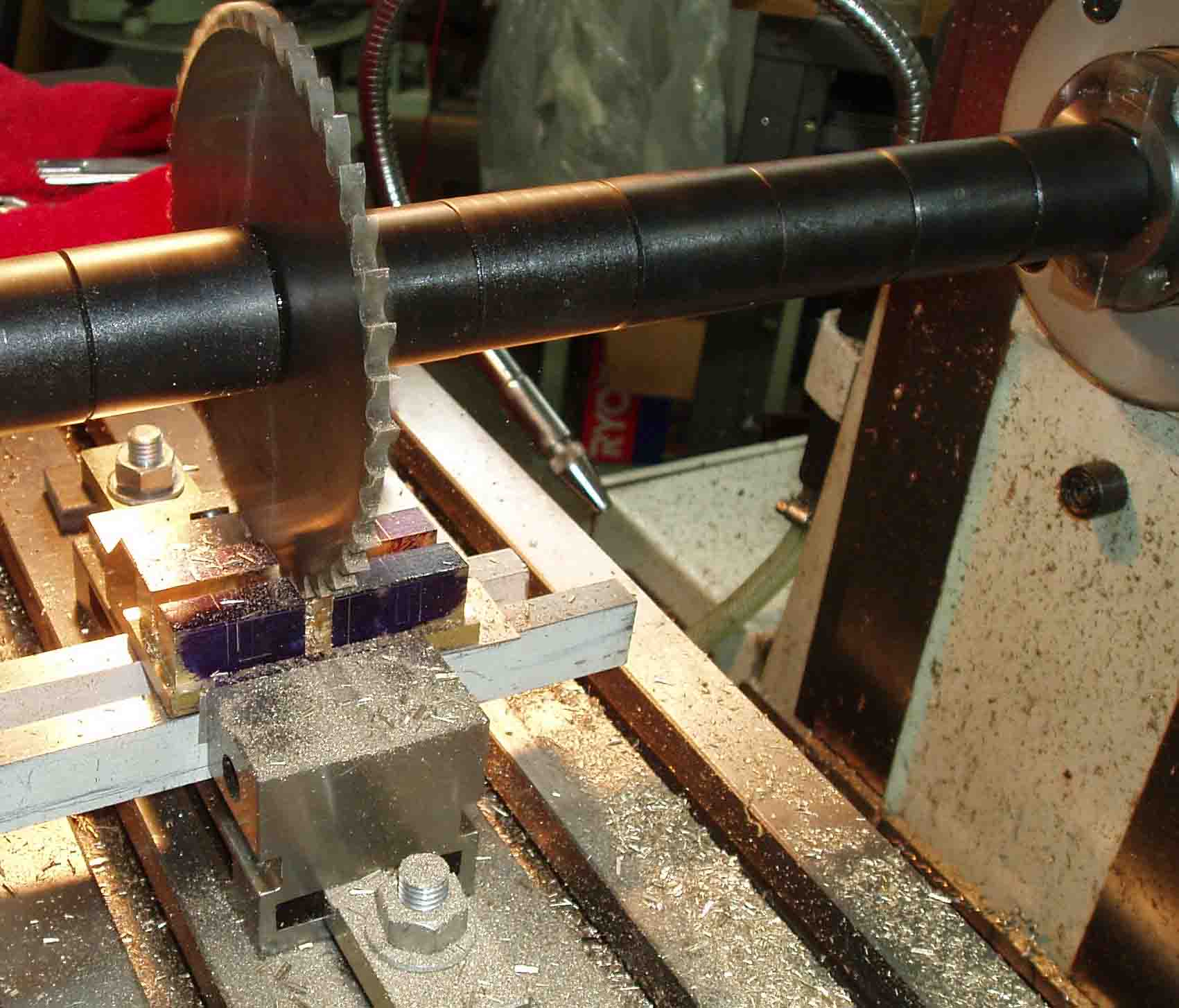 steel parallels were used to set the brass blank up square, aluminium strips protected the blank from marking in the vise.