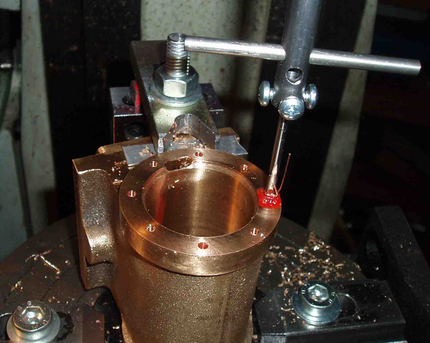 The cylinders were tapped in the mill using a homemade tap-holder in the drill chuck to ensure squareness,